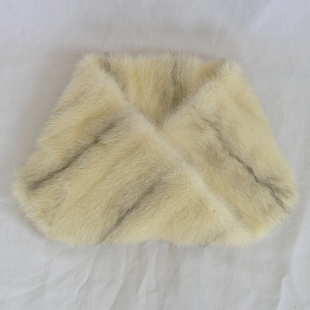 アイボリーにナチュラルなシルバーグレーのラインが印象的なクロスミンクファーゆったりnejiriスヌード「rococo」です。