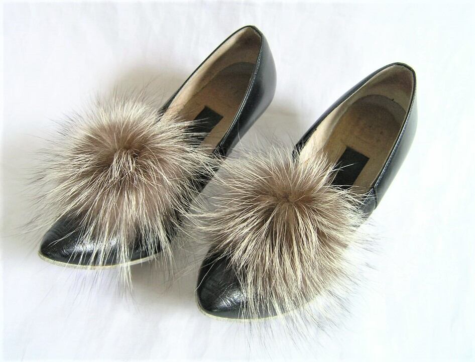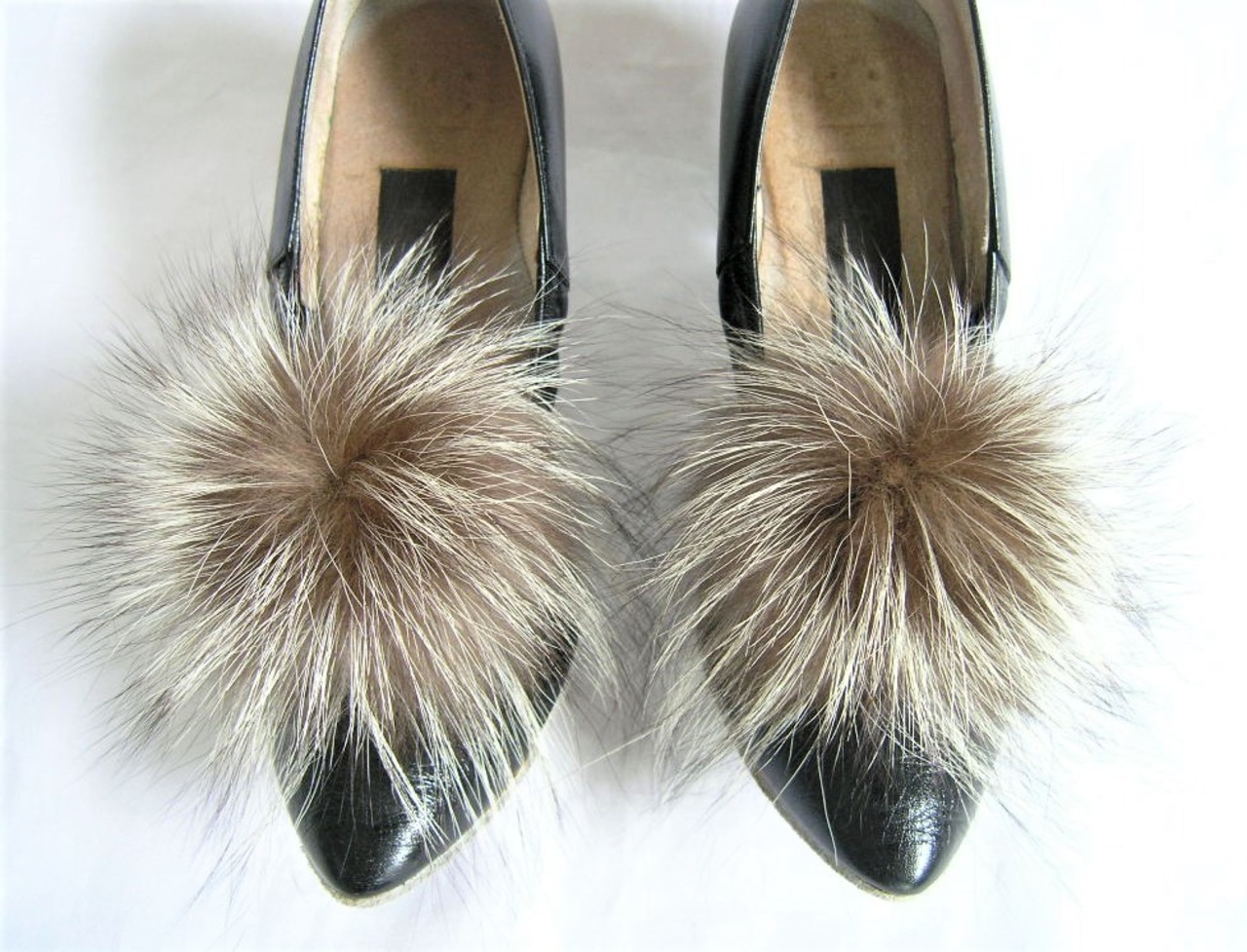 ふわふわで毛足の長いシルバーフォックスファーを使用したシューズクリップです。