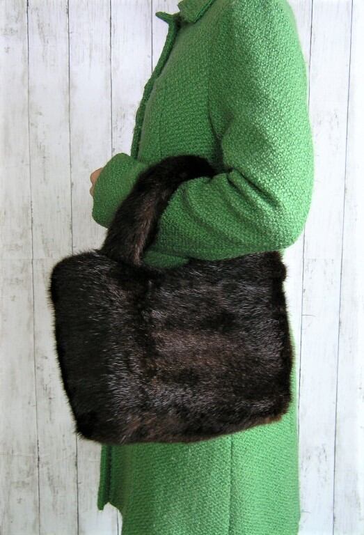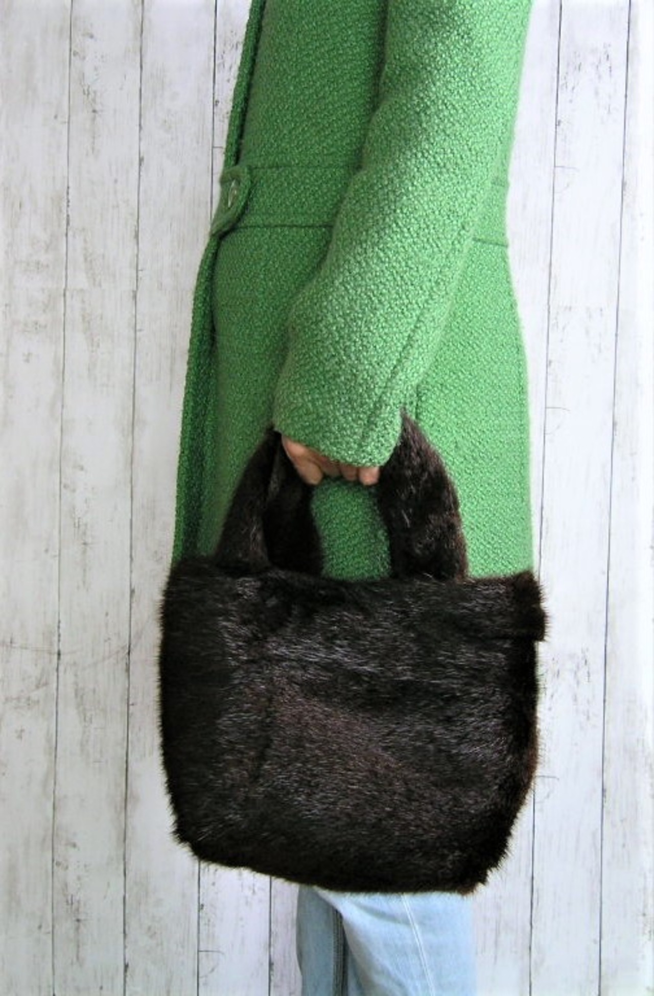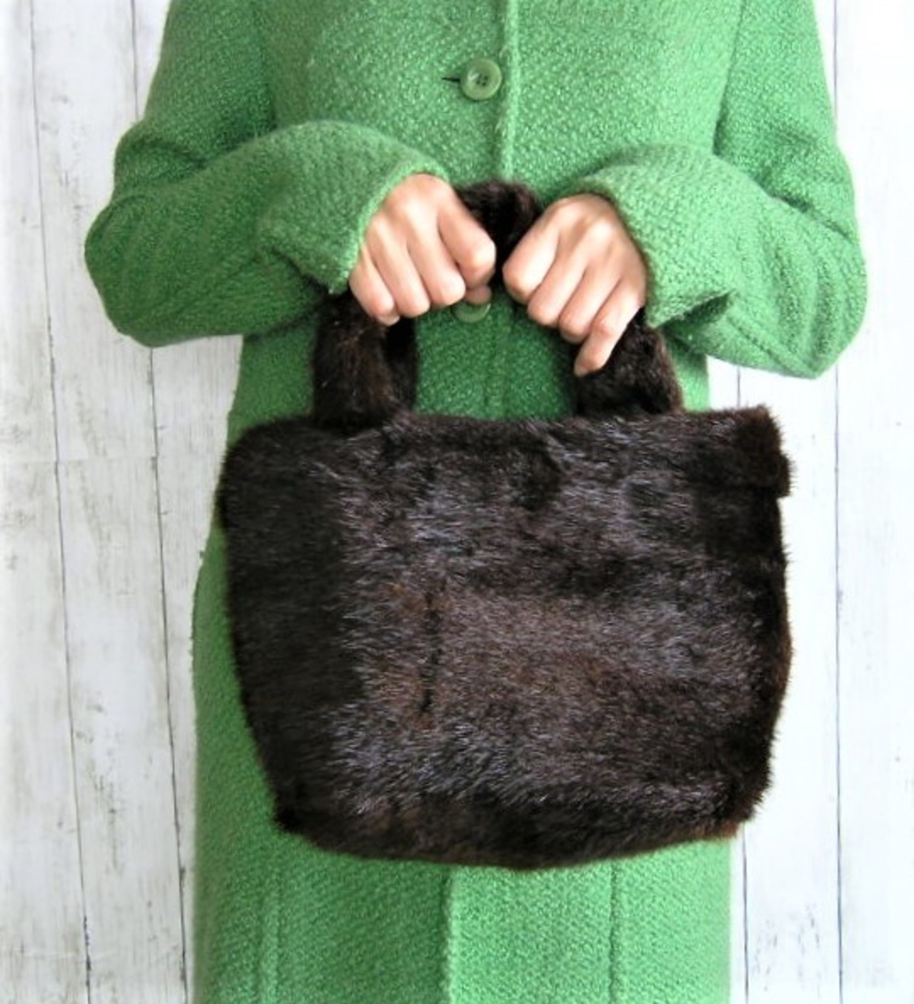 落ち着いたダークブラウンマスクラットのかわいいカジュアルなバッグです。