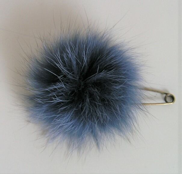 とてもきれいで珍しいブルー染めフォックスファーを使用したストールピンです。