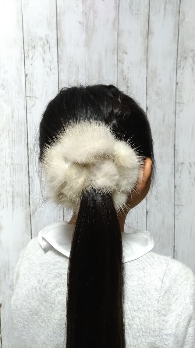 編み込み等ではなく、大きく切り出したミンク原皮を筒状にしてシュシュに仕上げておりますので、とても豪華で高級感たっぷりです。