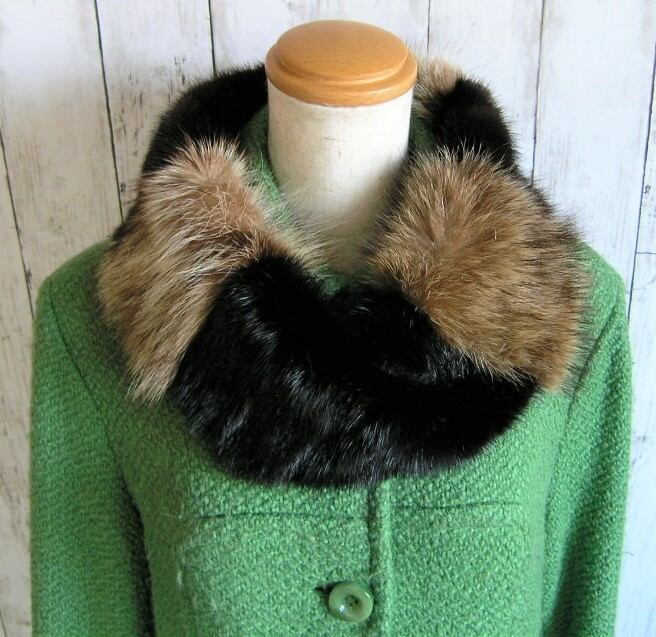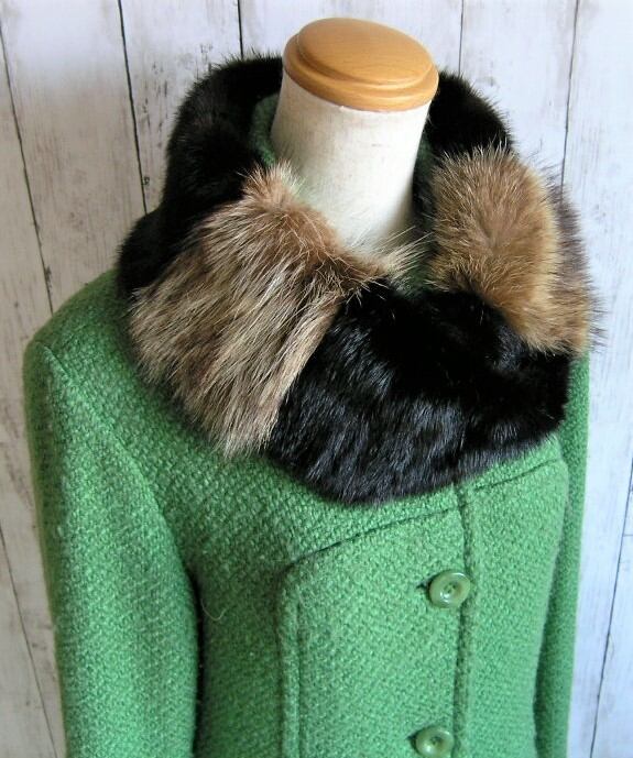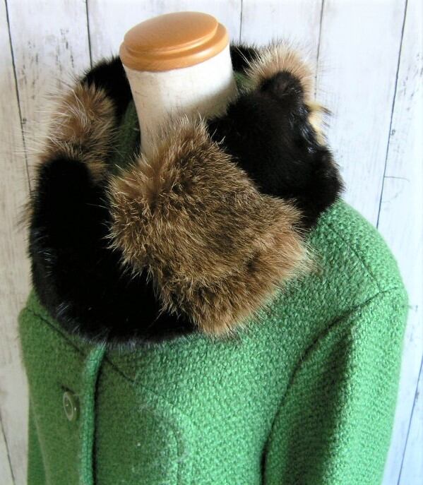 ベースのダークミンクにナチュラルな雰囲気のラクーンが縫い込まれた、デザイン性高い逸品!