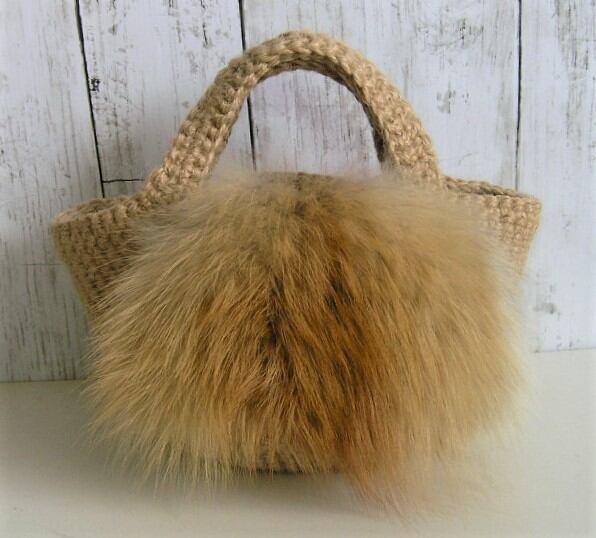 ふかふかレッドフォックスファーをあしらった麻紐ミニバッグ