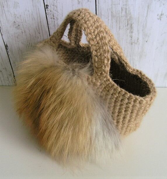 麻紐で編んだミニバッグにフォックスファーを大胆に飾り付けた1点ものです。