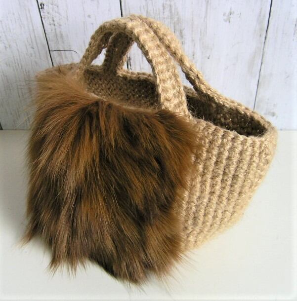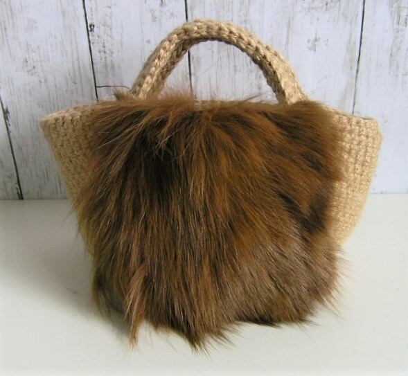 麻紐で編んだミニバッグにフォックスファーを大胆に飾り付けた1点ものです。