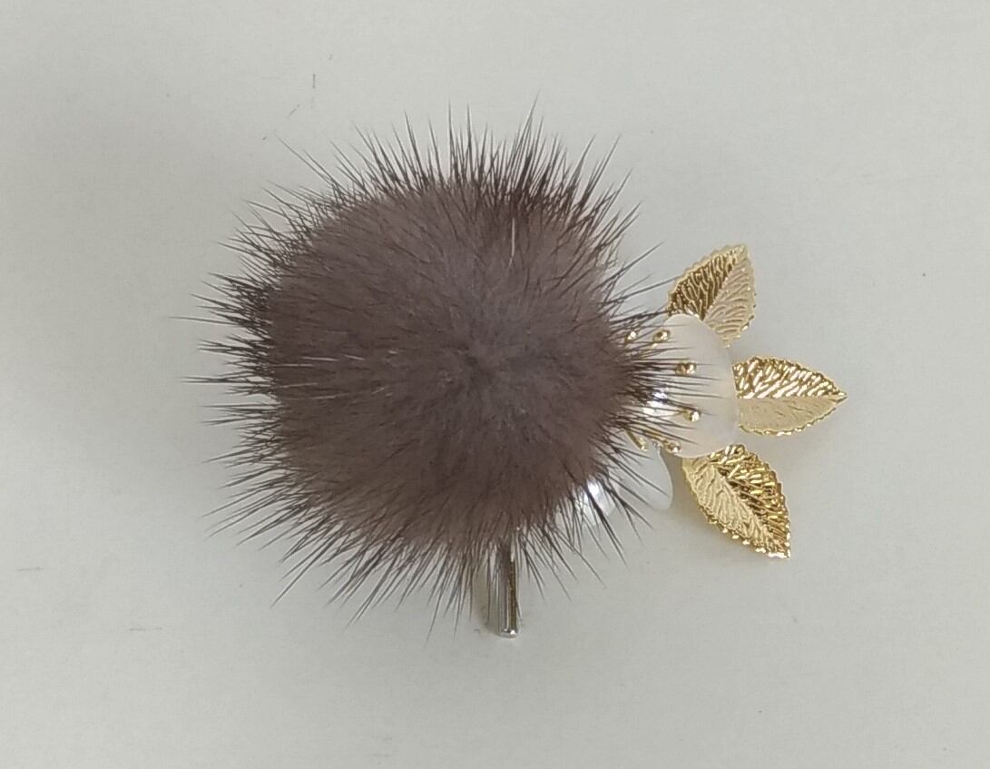 美しく輝くブルーアイリス色のミンクファーボンボンです。