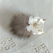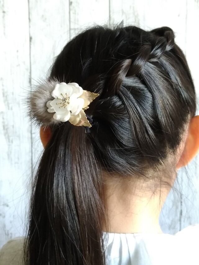 アクリルフラワー、クリスタルなどでシンプルで上品なポニーフックを製作しました。