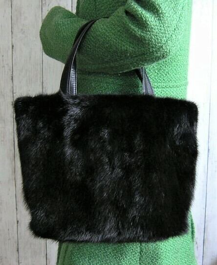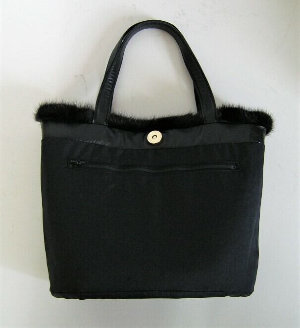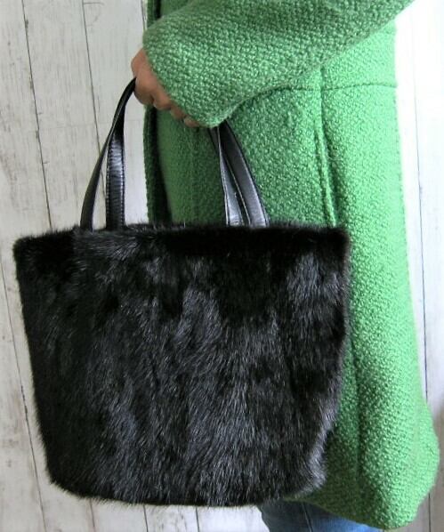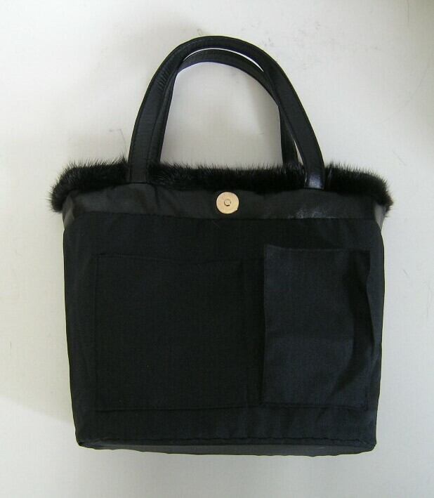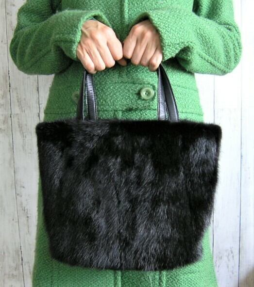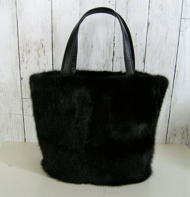 ブラックミンクファー楕円底バッグ(レザーハンドル)