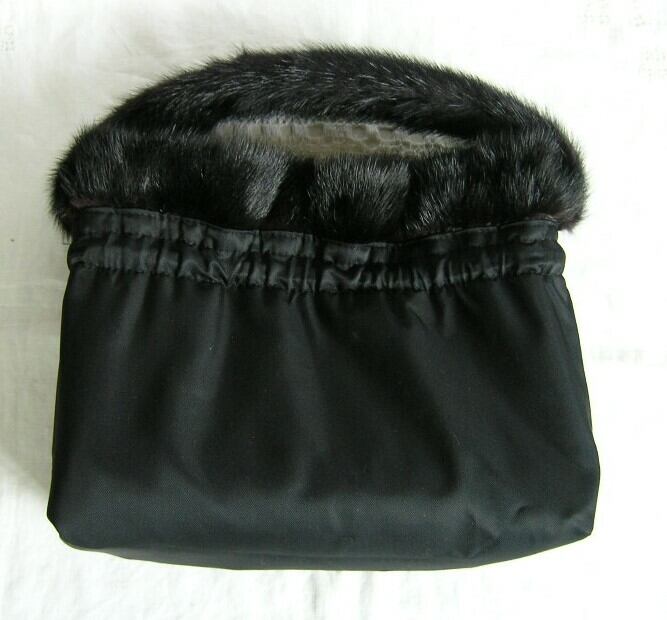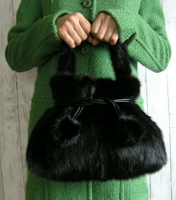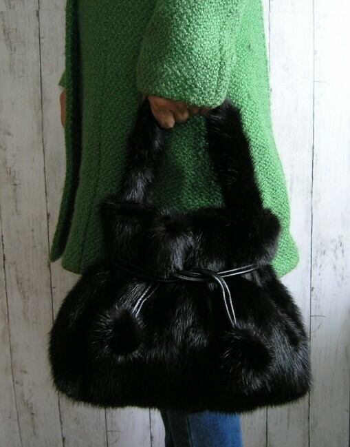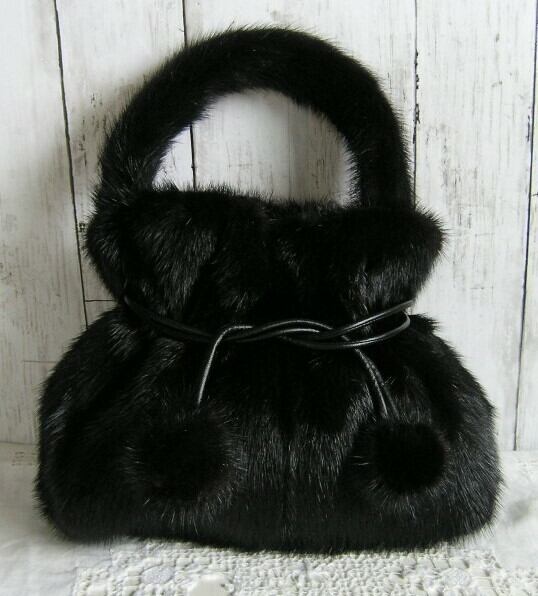 上品でエレガントなブラックミンクを贅沢に使用した優雅な巾着タイプのハンドバッグです。