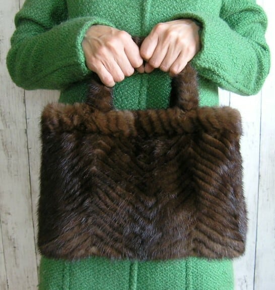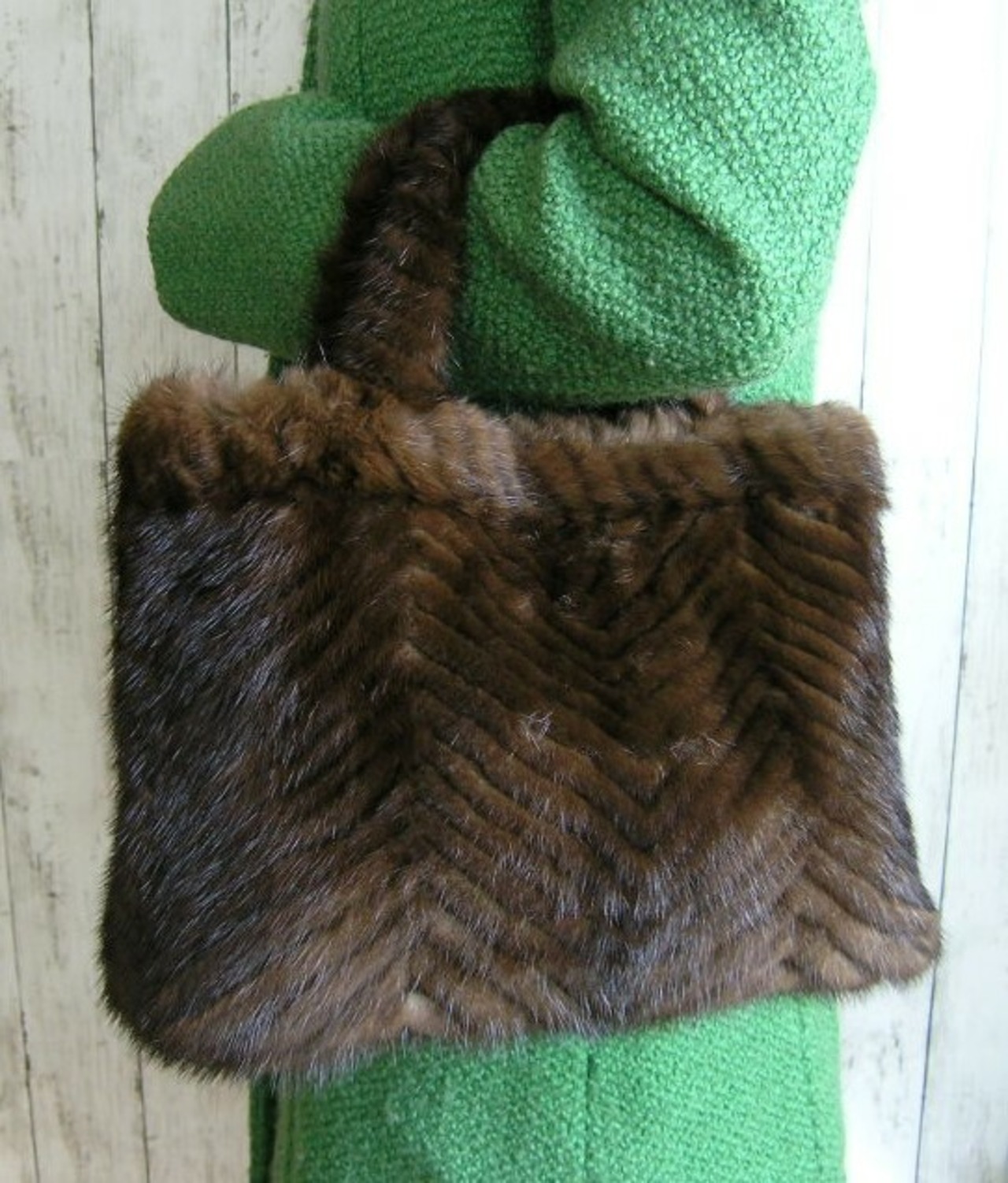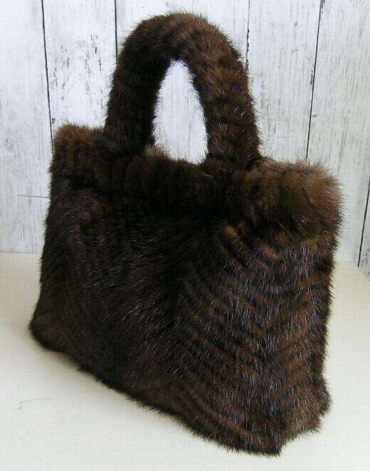 落ち着いた雰囲気でエレガントな茶系デミバフミンクにレザーでヘリンボーンデザインがあしらわれたファー素材を贅沢に使用した優雅なバッグです。
