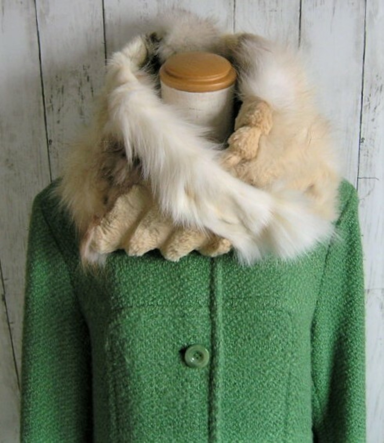 形の古くなった良質で美しいコートより素材を切り出し、スヌードに仕立て上げました♪