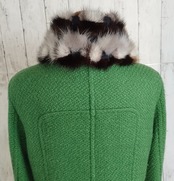 グレー、ブラウン、アイボリー、ホワイトの各種ミンクが、間にレザーを挟みながらブロック状に配置され、もこもことしたかわいらしい印象をつくりだしています。