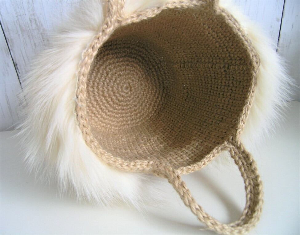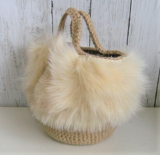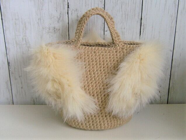麻ひもで編んだバッグにフォックスファーを大胆に飾り付けた1点ものです。