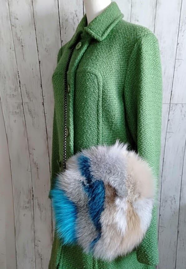 「毛質」「毛並」「毛艶」ともに最高級のカラフルフォックスラウンドショルダーバッグです。