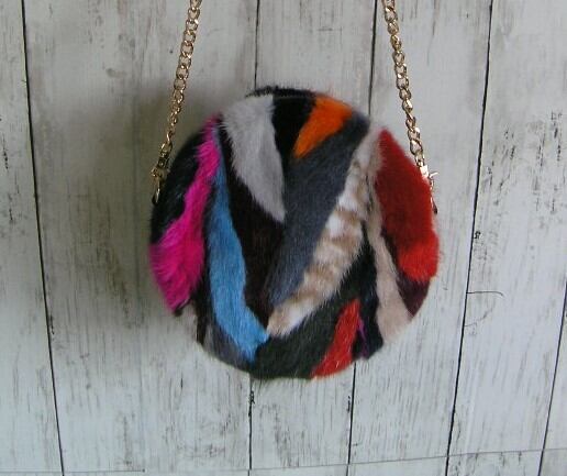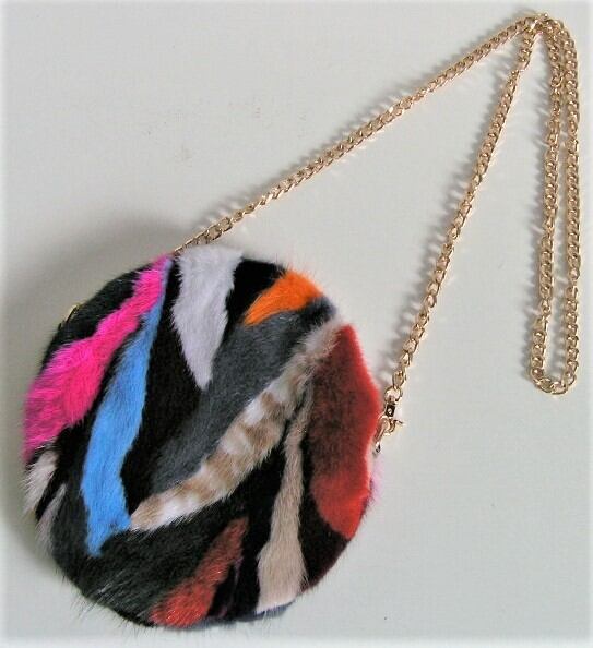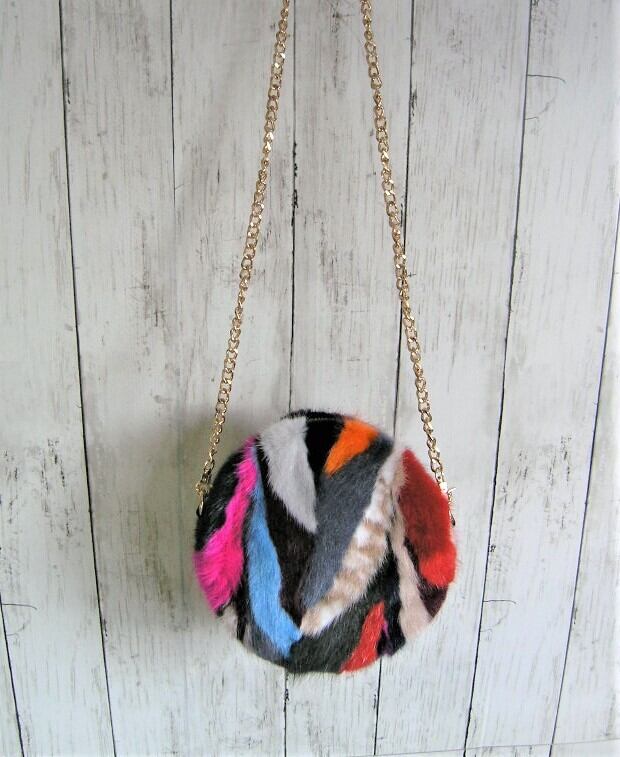 「毛質」「毛並」「毛艶」ともに最高級のカラフルミンクファー丸形ポシェットです。