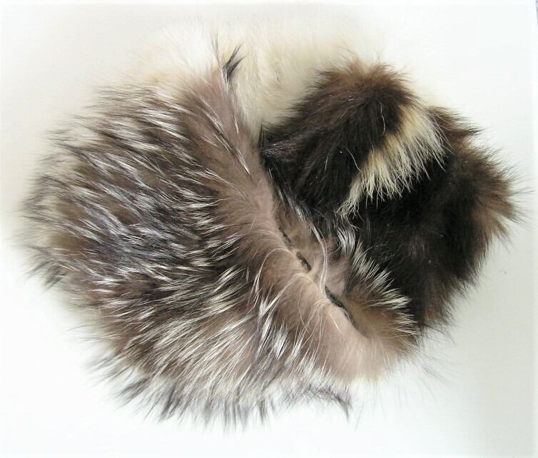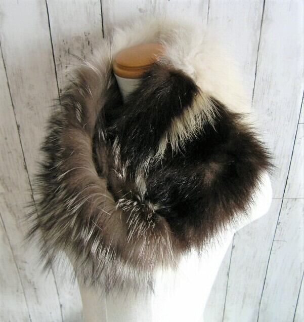 ブルフォックス、シルバーフォックス、スカンクの3種類のファーを組み合わせたファーnejiriスヌードです。