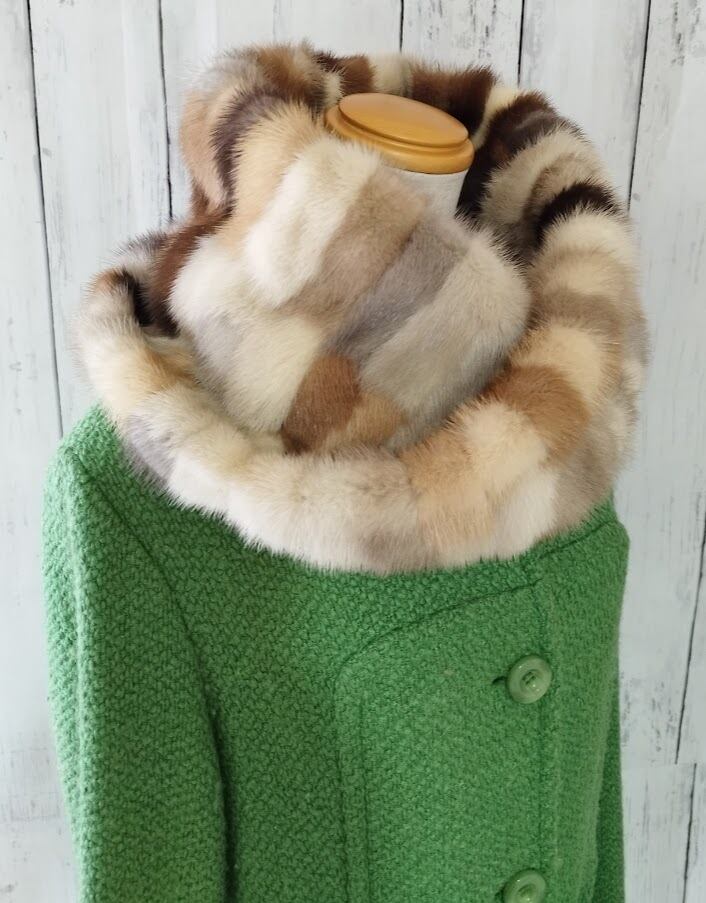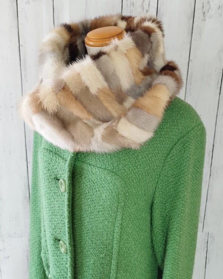 「毛質」「毛並」「毛艶」ともに最高級の数種ミンクをミックスしたマルチカラーミンクnejiriスヌード「milkt」です。