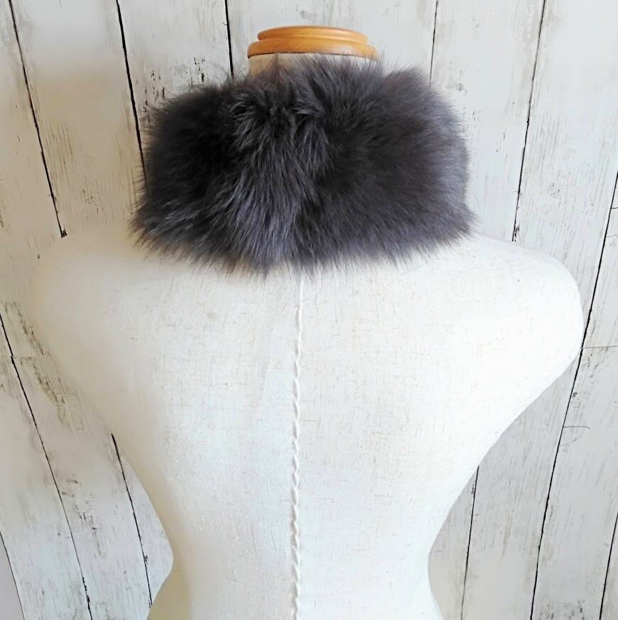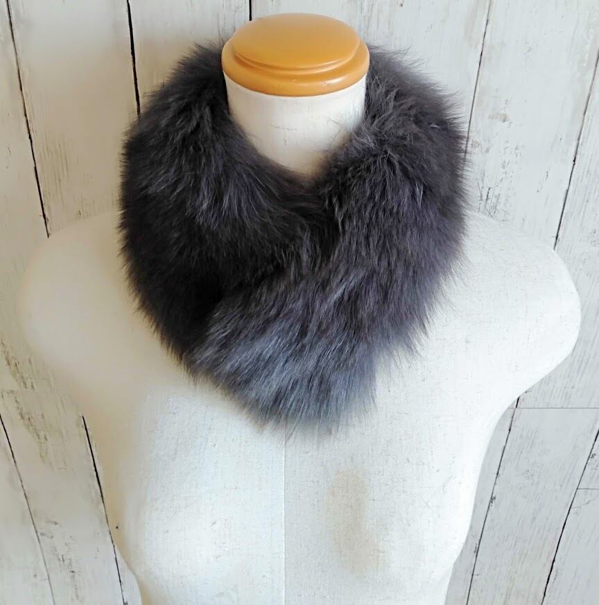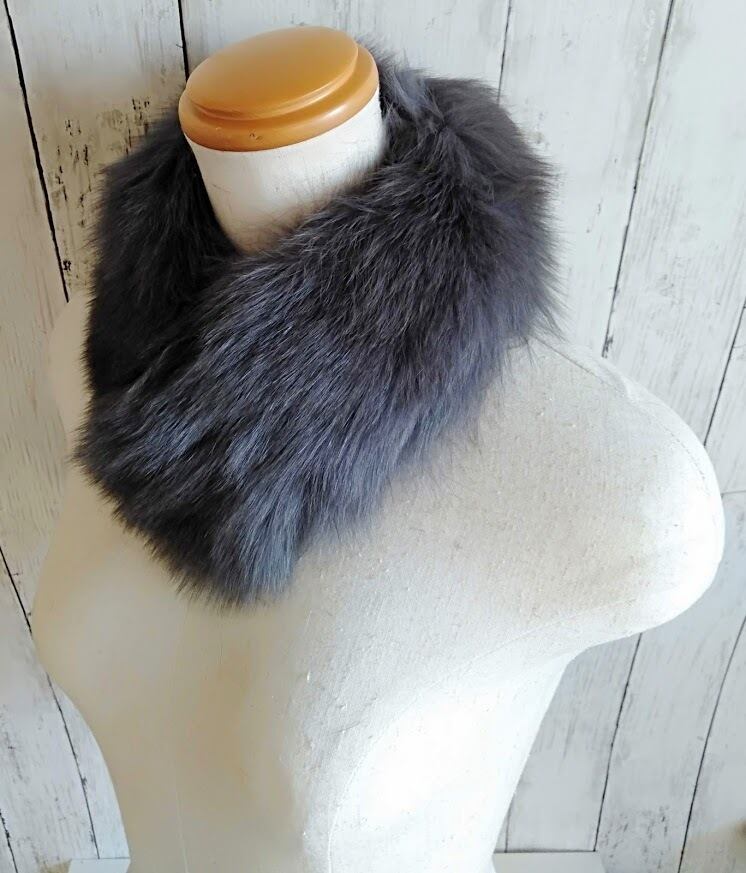 シックで上品な色合いのダークグレーフォックスショールマフラーです。