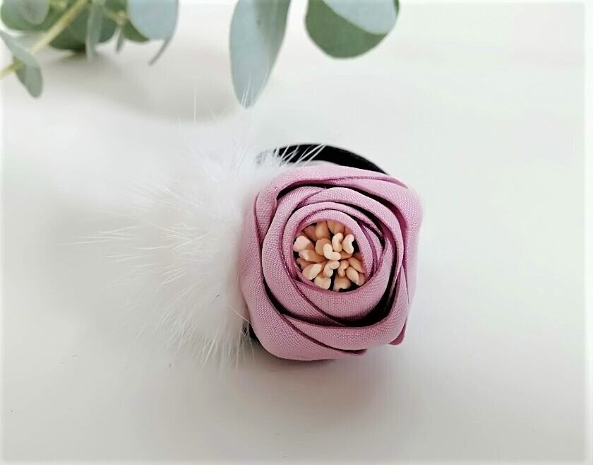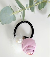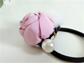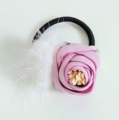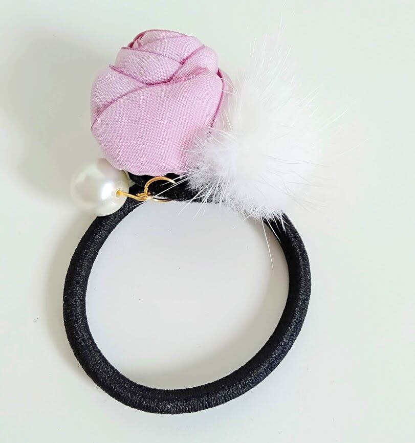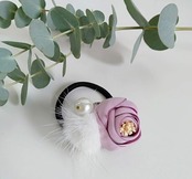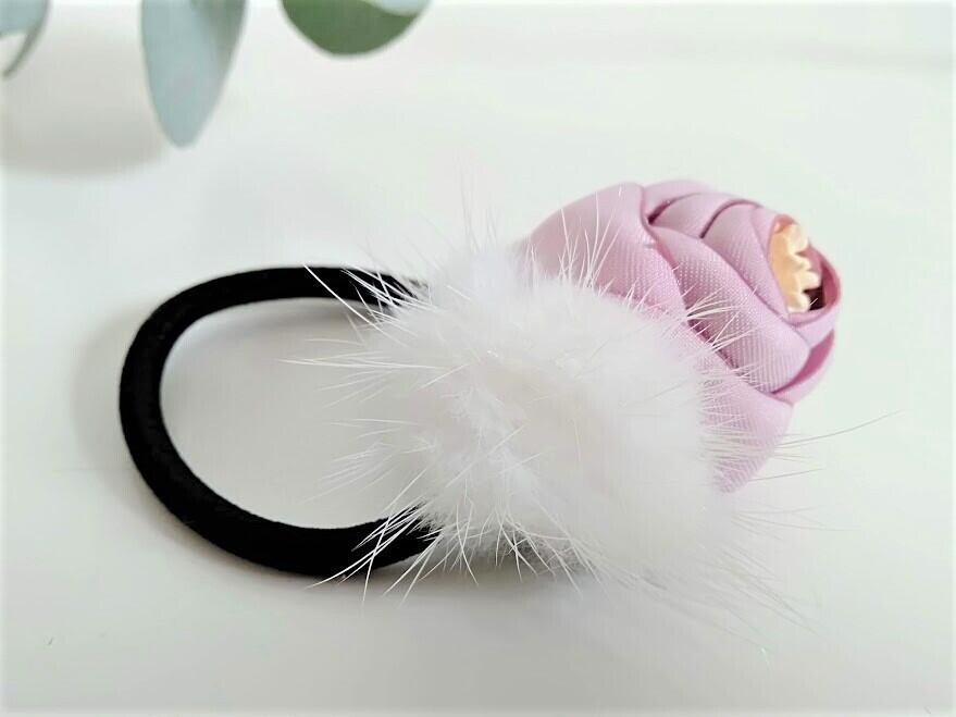 ピンクフラワーwithパール&ホワイトミンクヘアゴム | new antique fur
