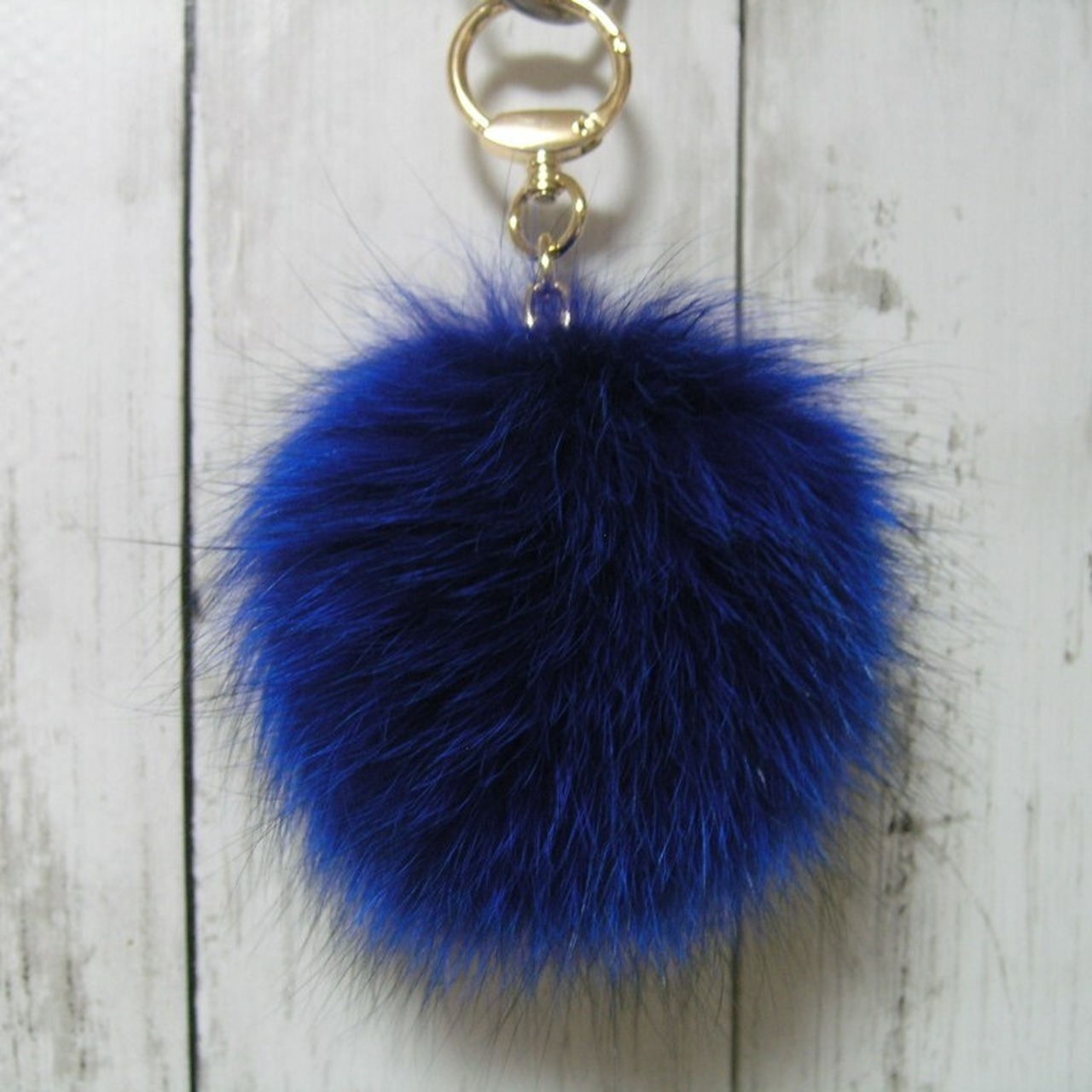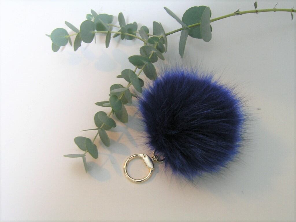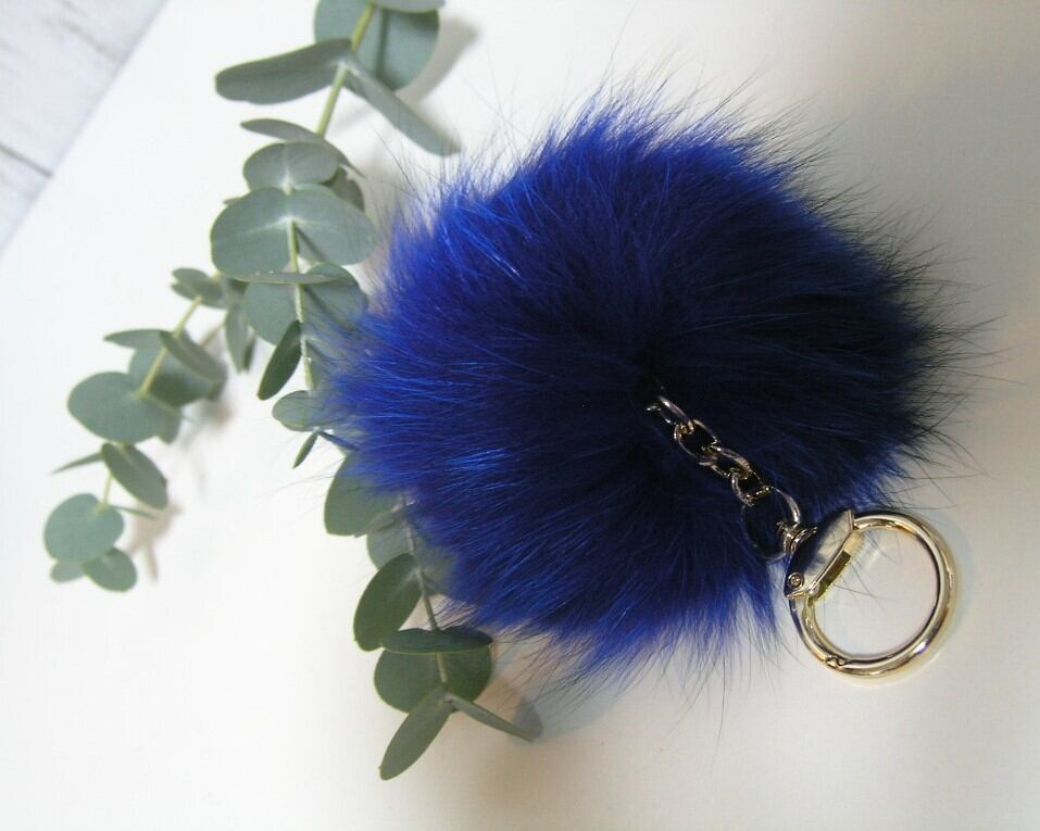 とても美しい鮮やかな青染めフォックスファーのバッグチャームです。