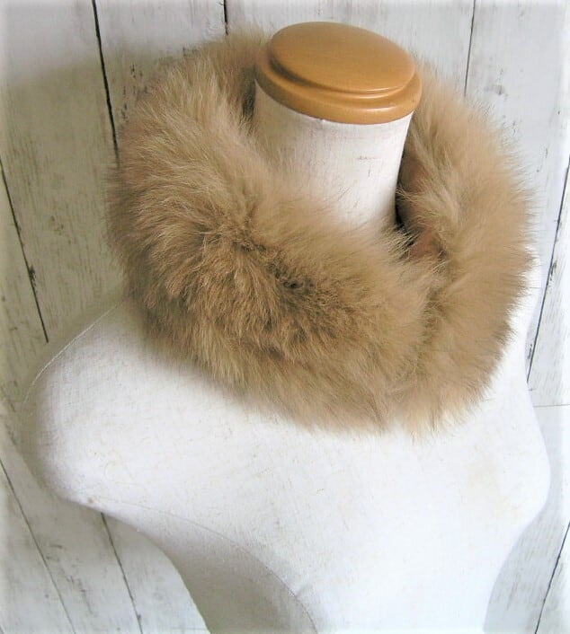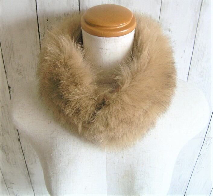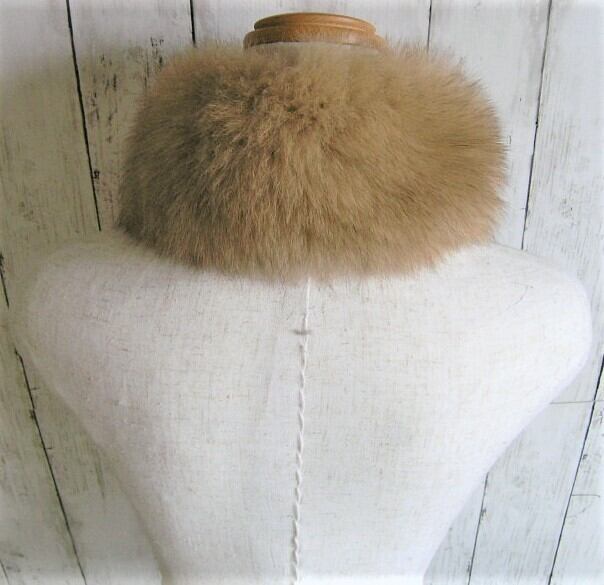 何にでも合わせやすいカーキ/ライトブラウンのブルーグレーフォックスショールマフラーです。
