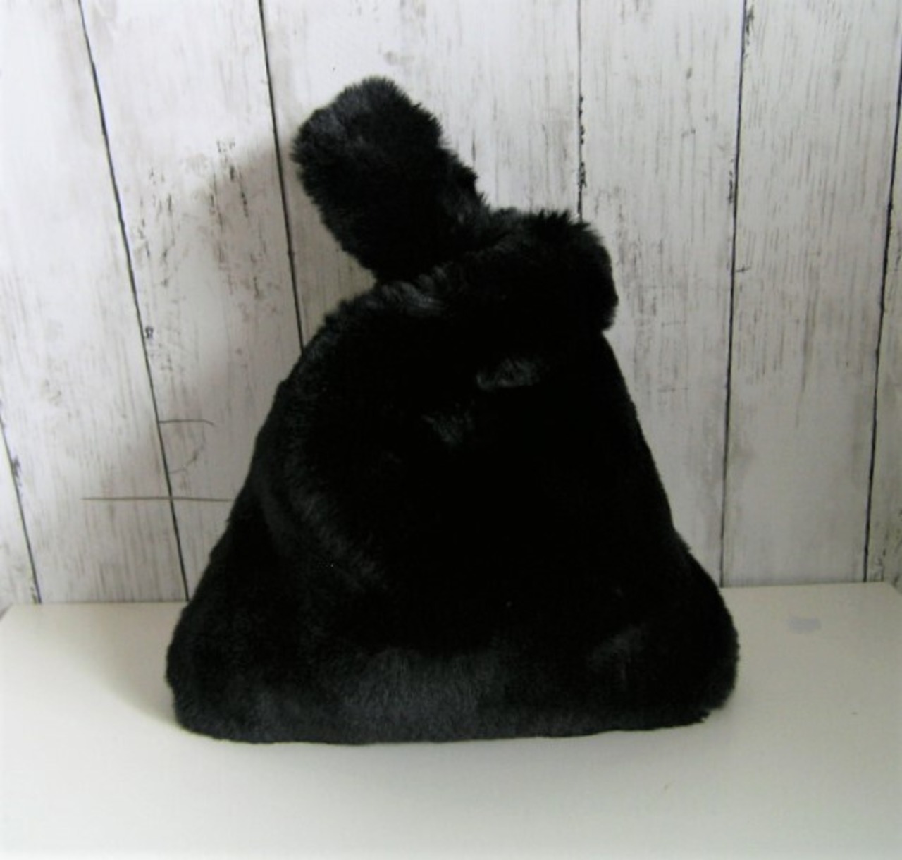 エコバッグ型エコファーハンドバッグ◆ブラック