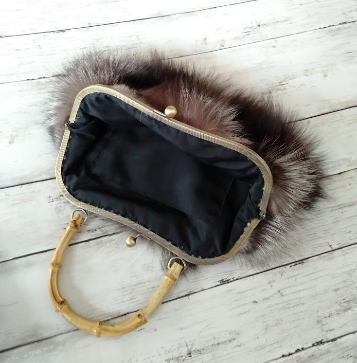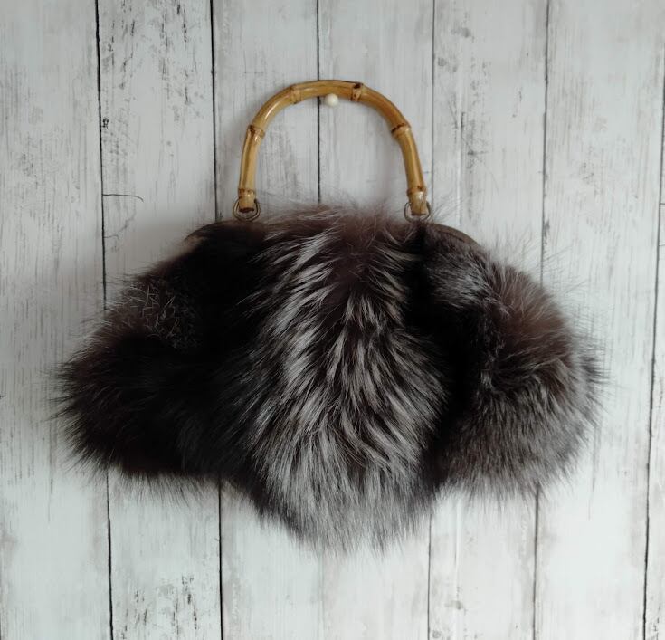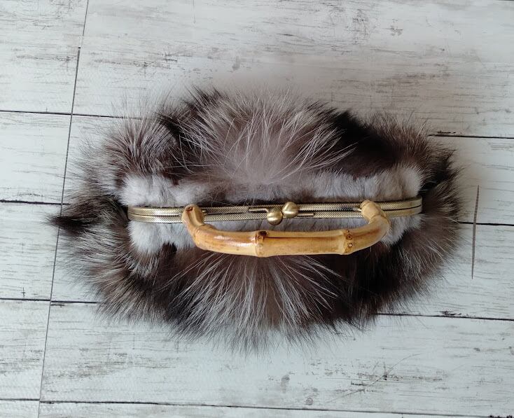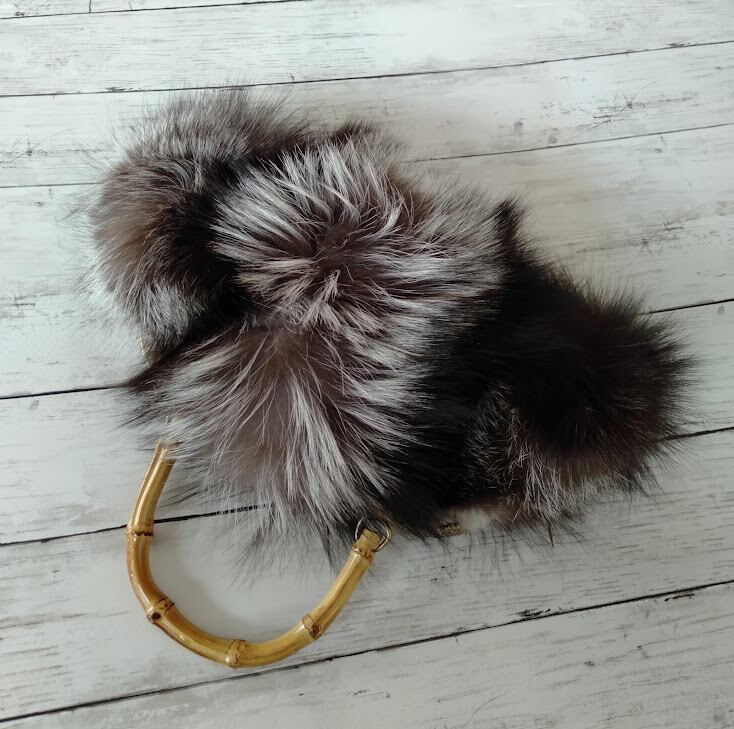 ゴージャスなシルバーフォックスをがま口バッグに仕立て上げた完全1点ものになります。