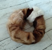 ブラウン系ミンクにブルー&ライトブラウンフォックスをミックスしたストレッチスヌードです。