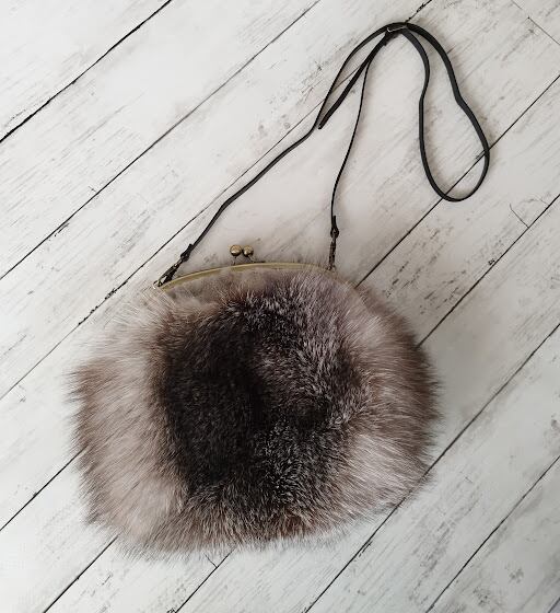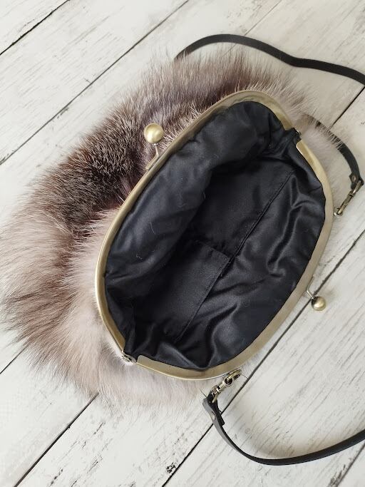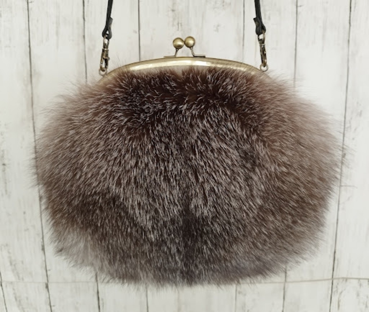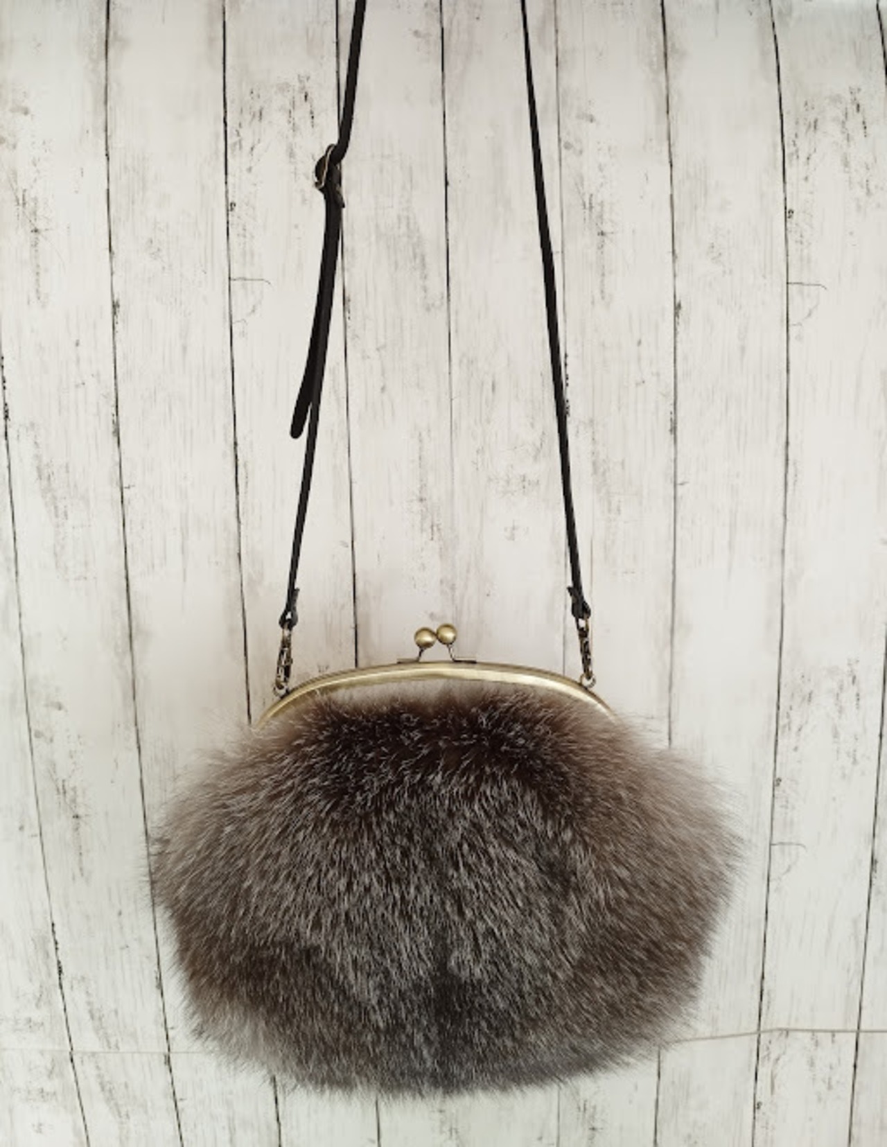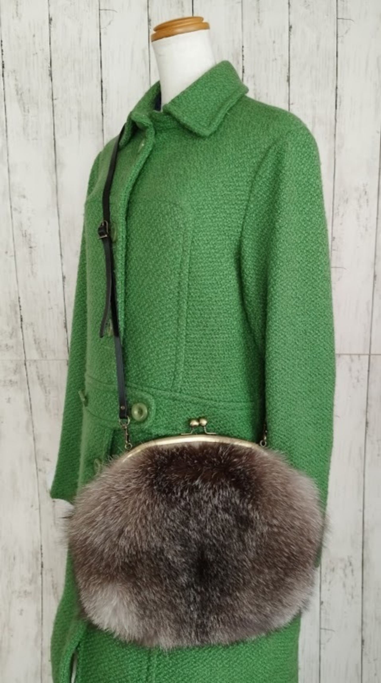 ゴージャスながら上品な雰囲気のブルーフロストフォックスをがま口バッグに仕立て上げた完全1点ものになります。