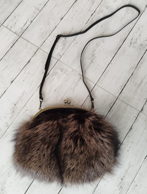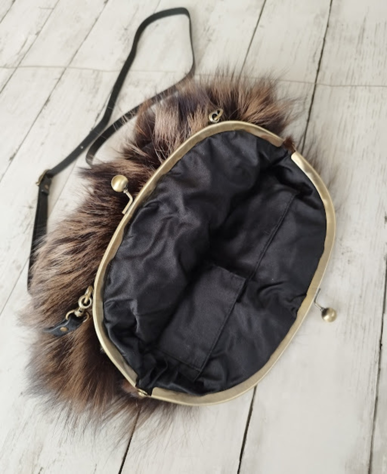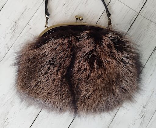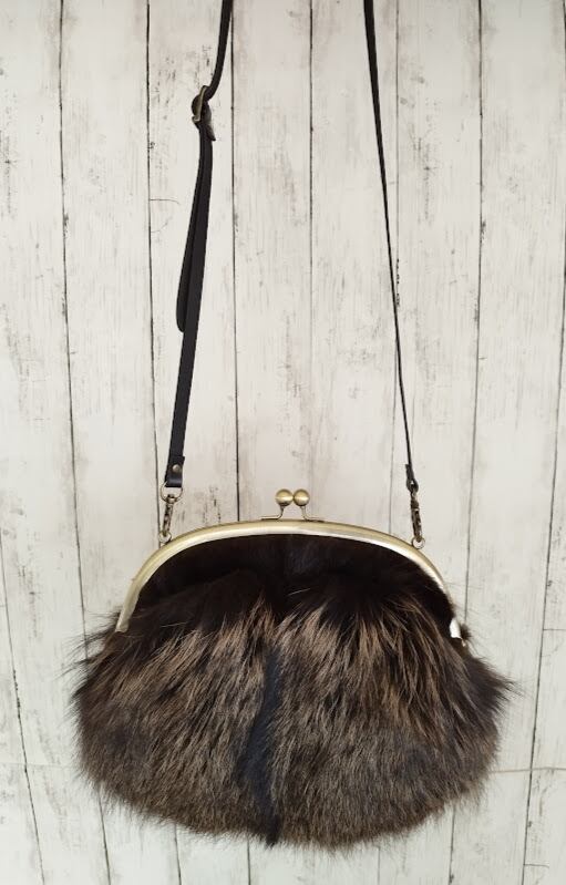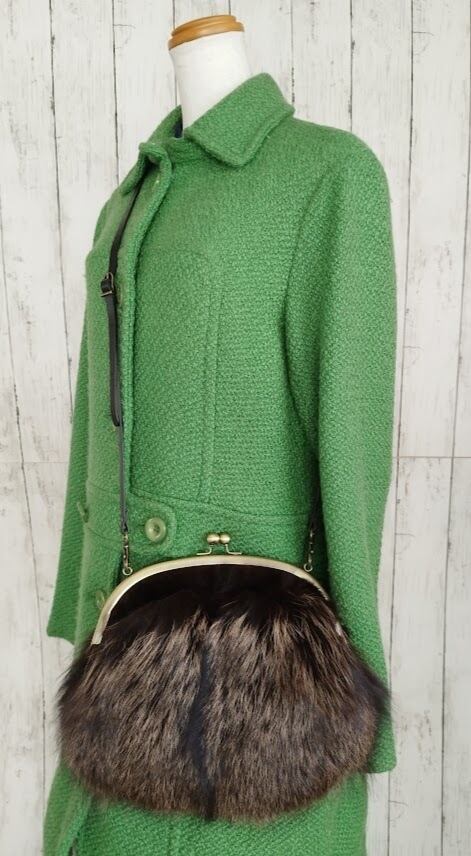 シックでゴージャスな雰囲気のブラウン染シルバーフォックスをがま口バッグに仕立て上げた完全1点ものになります。
