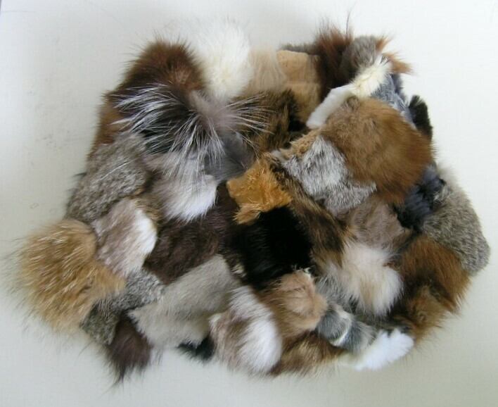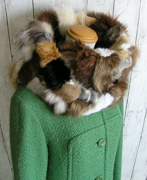 フォックス、ラム、ムートン、ラクーン、ミンク、セーブルなどなどの素材を細かく切り出し継ぎ合わせた、とっても手の込んだ他に2つとない1点ものです。