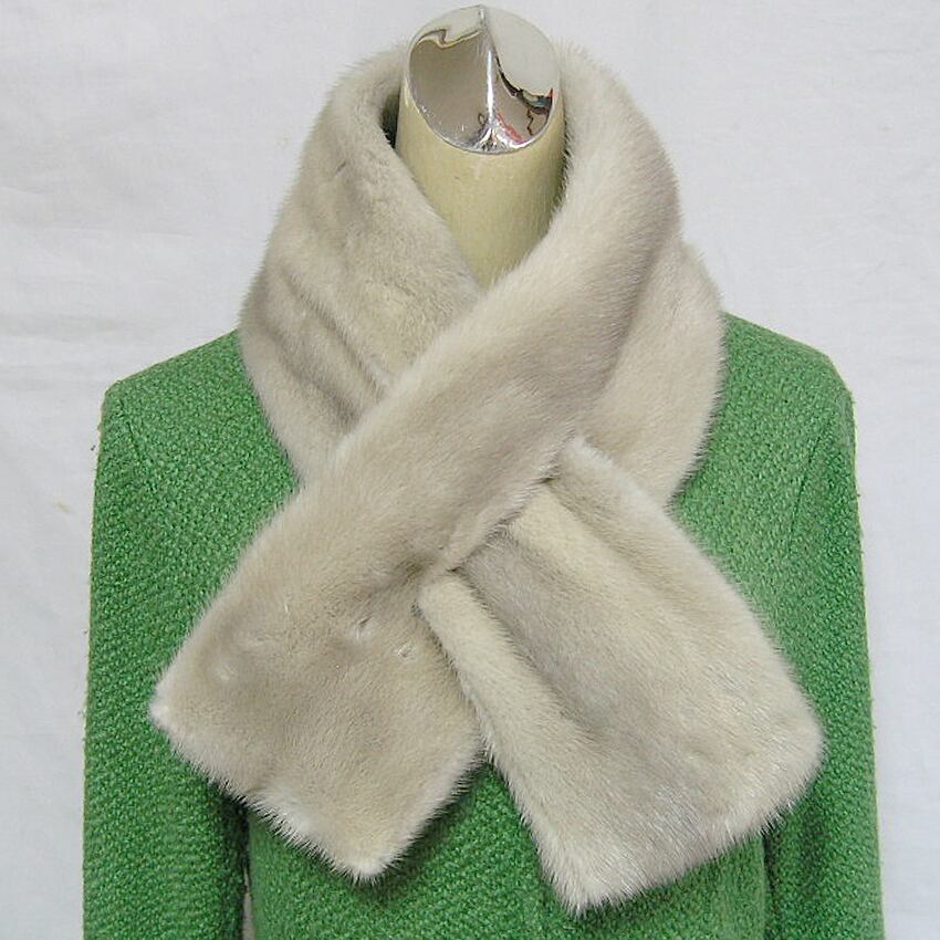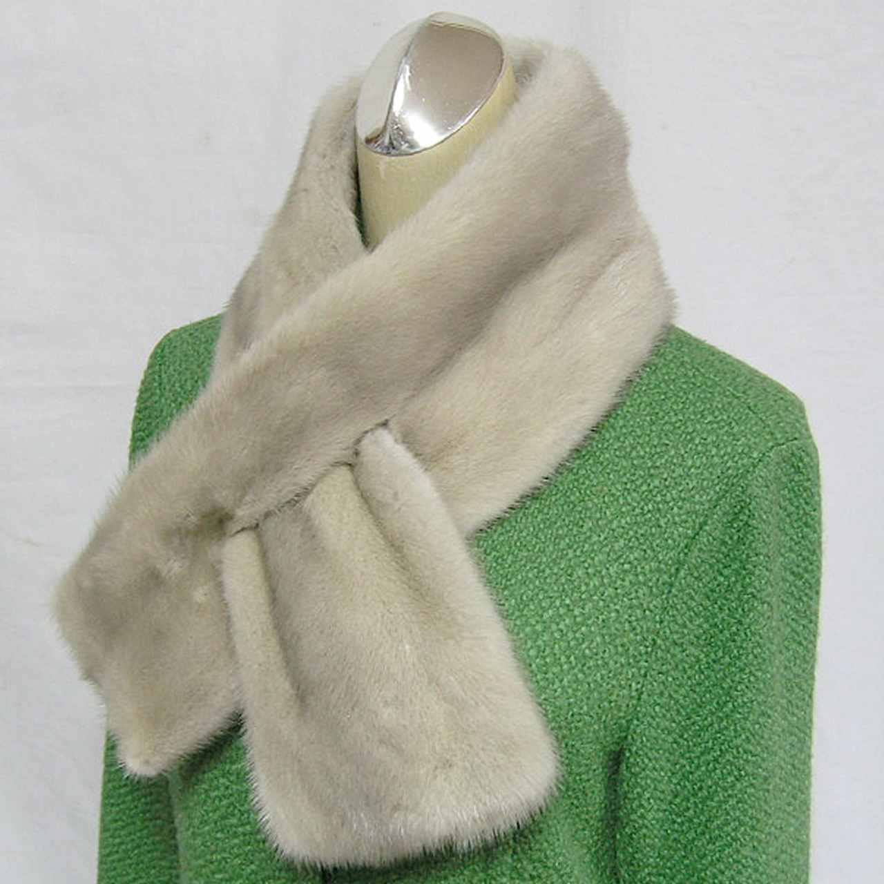 上品なシルバーグレーがとっても素敵なサファイアミンクファースリット入りクロスマフラー「salafa」です。