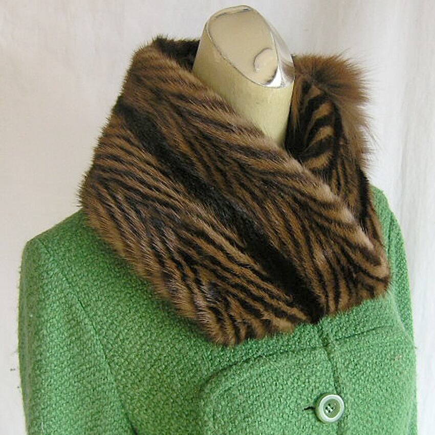 2種のブラウン系ミンク(デミバフ&パステル)を交互に配したデザイン性の高い希少な素材を使用しております!!!
