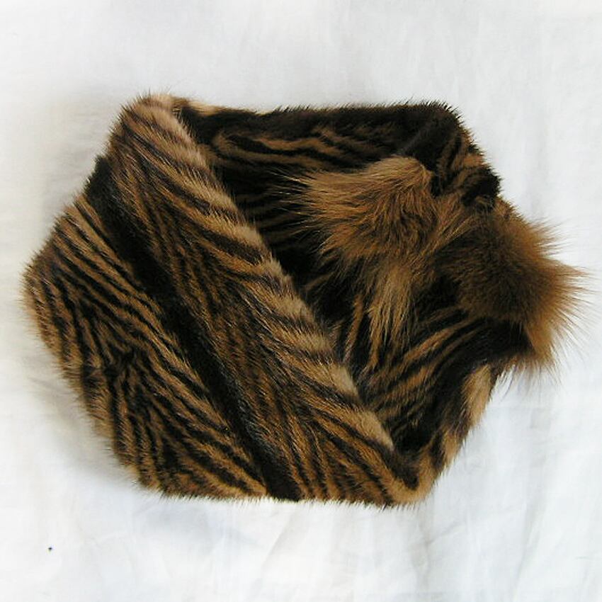 「毛質」「毛並」「毛艶」ともに最高級のブラウン系2種ミンクファー+フォックスnejiriスヌード「urala」です。