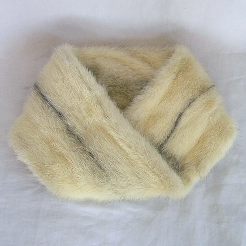 アイボリーにナチュラルなシルバーグレーのラインが印象的なクロスミンクファーnejiriスヌード「rossi」です。